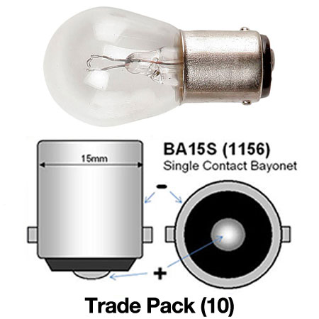 RING 12V 15 CP BA15S INTERIOR/CARAVAN BULB TRADE PACK 10